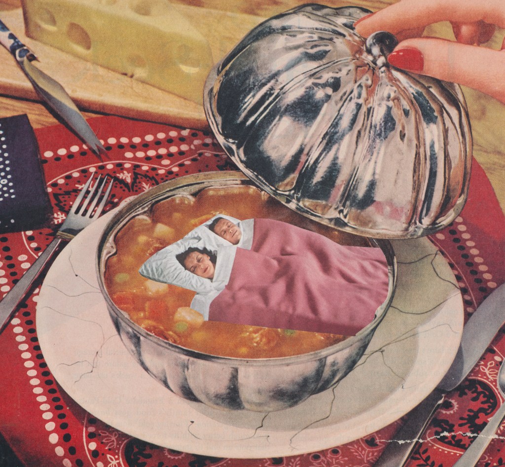 I had a lot of fun with this collection. Among my favorites are Asleep in the Soup, Growing, and Dream Cake. I also desperately want to live in the mountain house in Dream House. That said, I hope you enjoy these experiments in collage art.