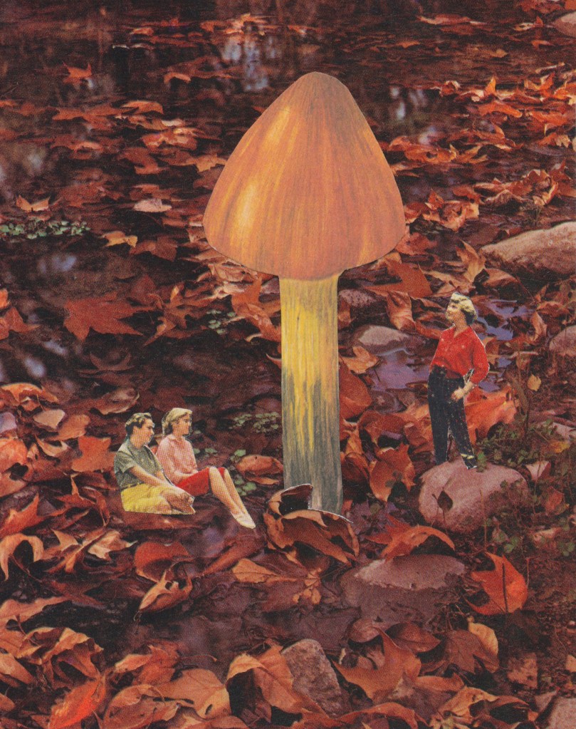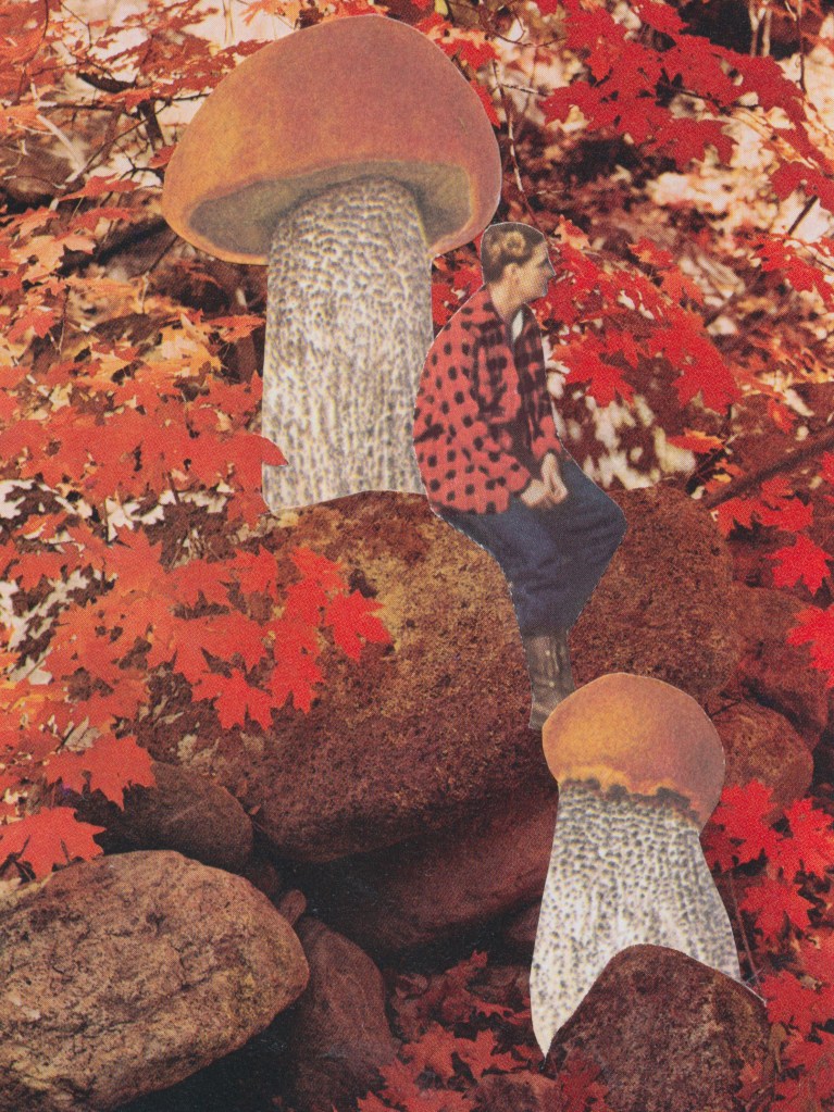 Here are some new experiments in collage art. There’s lots of smoking in this collection. That’s because I just picked up some 70s Life magazines that have great cigarette ads in them. I love vintage cigarette ads. There are also some fall-themed compositions in here.