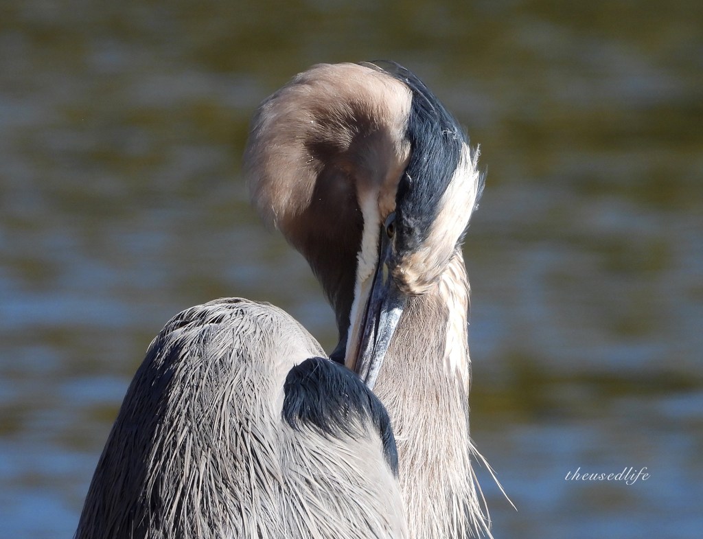 So, this morning, I decided to go out into the field. I went hiking and spent several hours birding with some success. I spotted the Downy Woodpecker above engaged in a heated dispute with another woodpecker along one of the hiking trails. I saw some migrating Palm Warblers, which was exciting. (I may actually go back tomorrow morning to see if I can get some better photographs of them.) And I managed to get up close with a Great Blue Heron. I also saw some birds I didn’t get to photograph (another reason I’ll likely go back tomorrow), including a thrush that I didn’t see well enough to identify, several Yellow-rumped Warblers, and some kinglets.