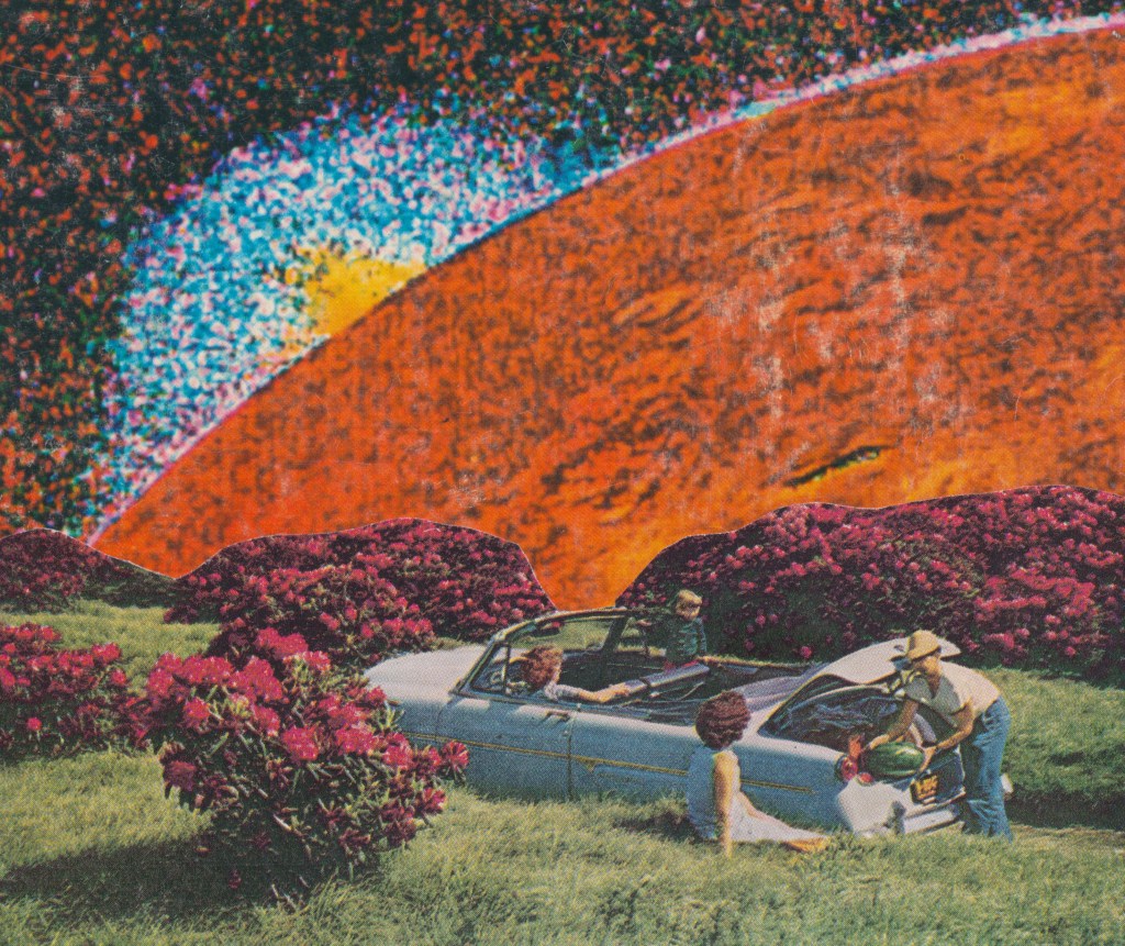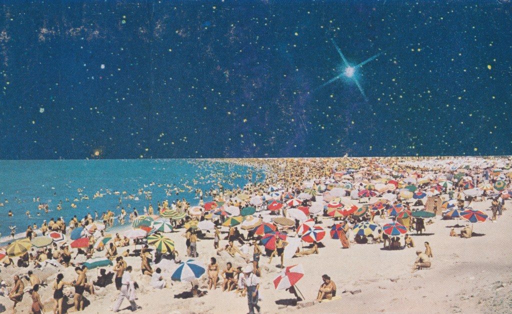 Cosmic Beach, paper collage, 2026
