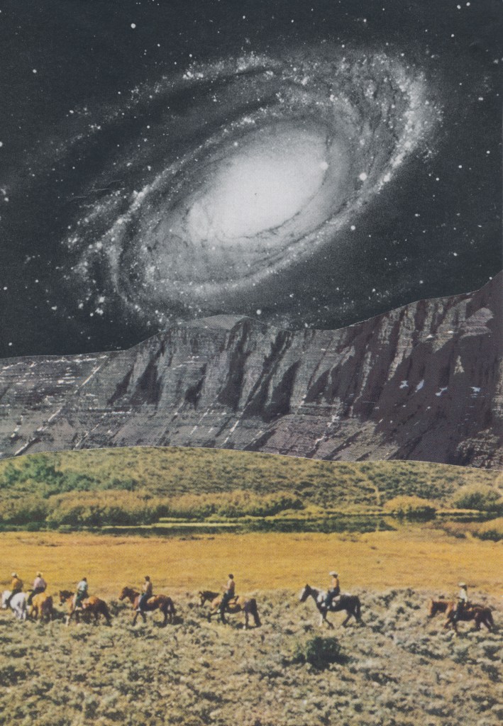 Here are some recent experiments in collage art. It’s worth mentioning (in case you haven’t noticed) that I have a habit of recycling a lot of the same names for my collages. I must have a thousand “Journeys” and “Cosmic Beaches.” Sometimes, I number them and organize them into a collection, but often I don’t. The reason is that titling my artwork is my least favorite part of the process. If I felt it were practical to leave all of my collages untitled, I probably would. That said, I hope you enjoy this collection.