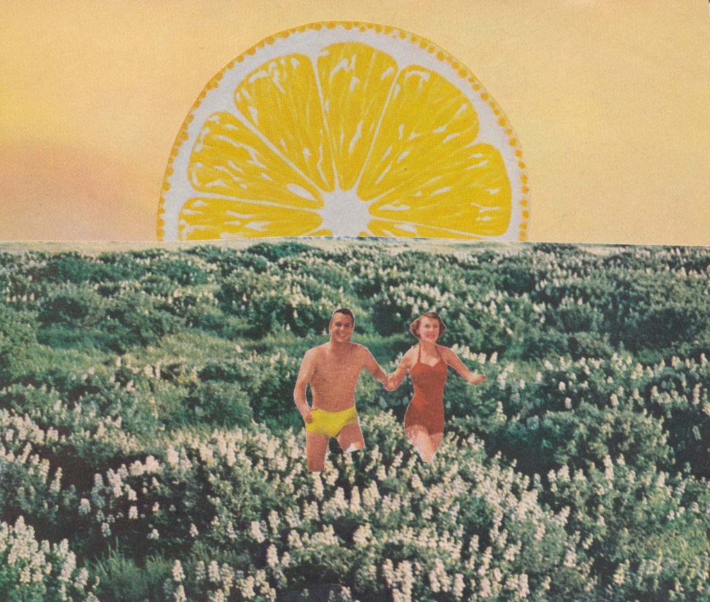 Fun in the Sun, paper collage, 2026