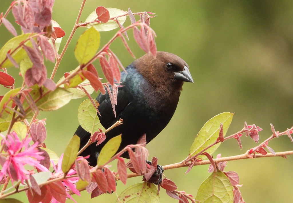 A male Brown-headed Cowbird taking a bath. The cowbirds frequently take advantage of the bird bath. Also, you can hear several different birds vocalizing in the background of this video. The loudest and most persistent is a Carolina Wren.