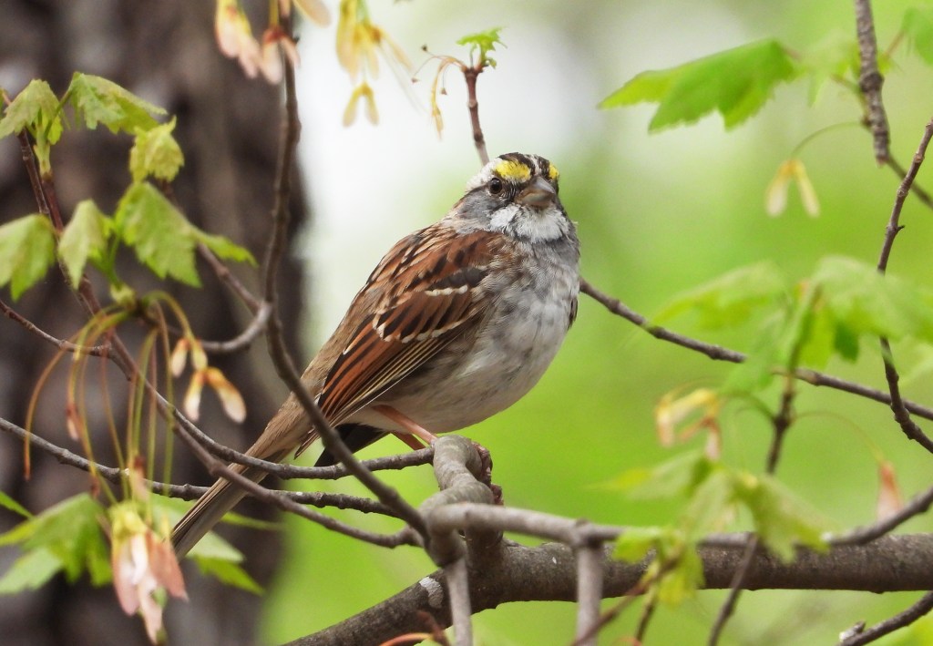 My bird feeders have been busy, but not as busy as they were during the winter months. Some of our winter residents have begun migrating north to their breeding grounds, and those who are still here, including White-throated Sparrows and Yellow-rumped Warblers, are visiting the feeders less frequently, as there are plenty of insects available. (If only more of my backyard visitors ate carpenter bees!)