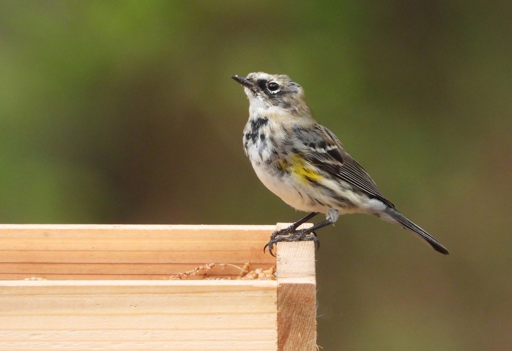 Yellow-rumped Warbler. This bird is molting into its spring plumage, which is why it looks like it has a bit of a flat top.