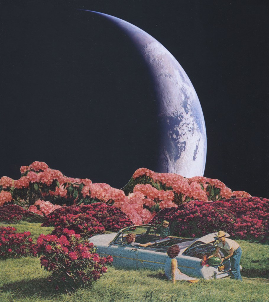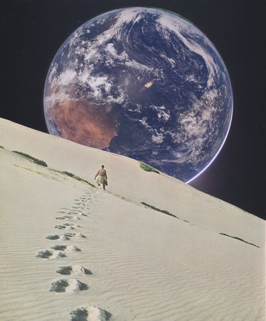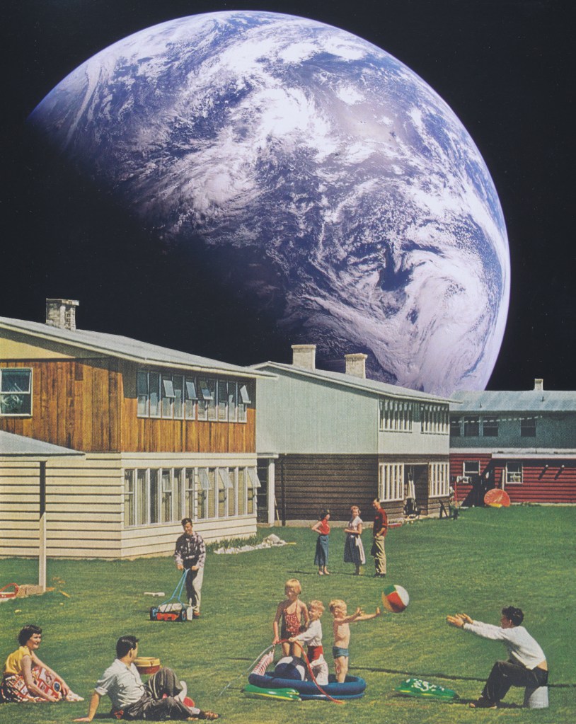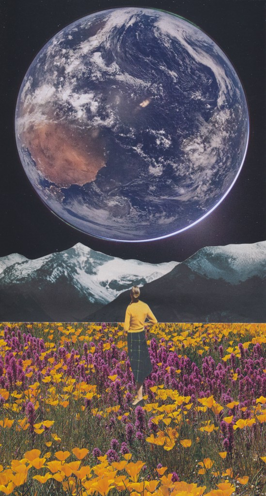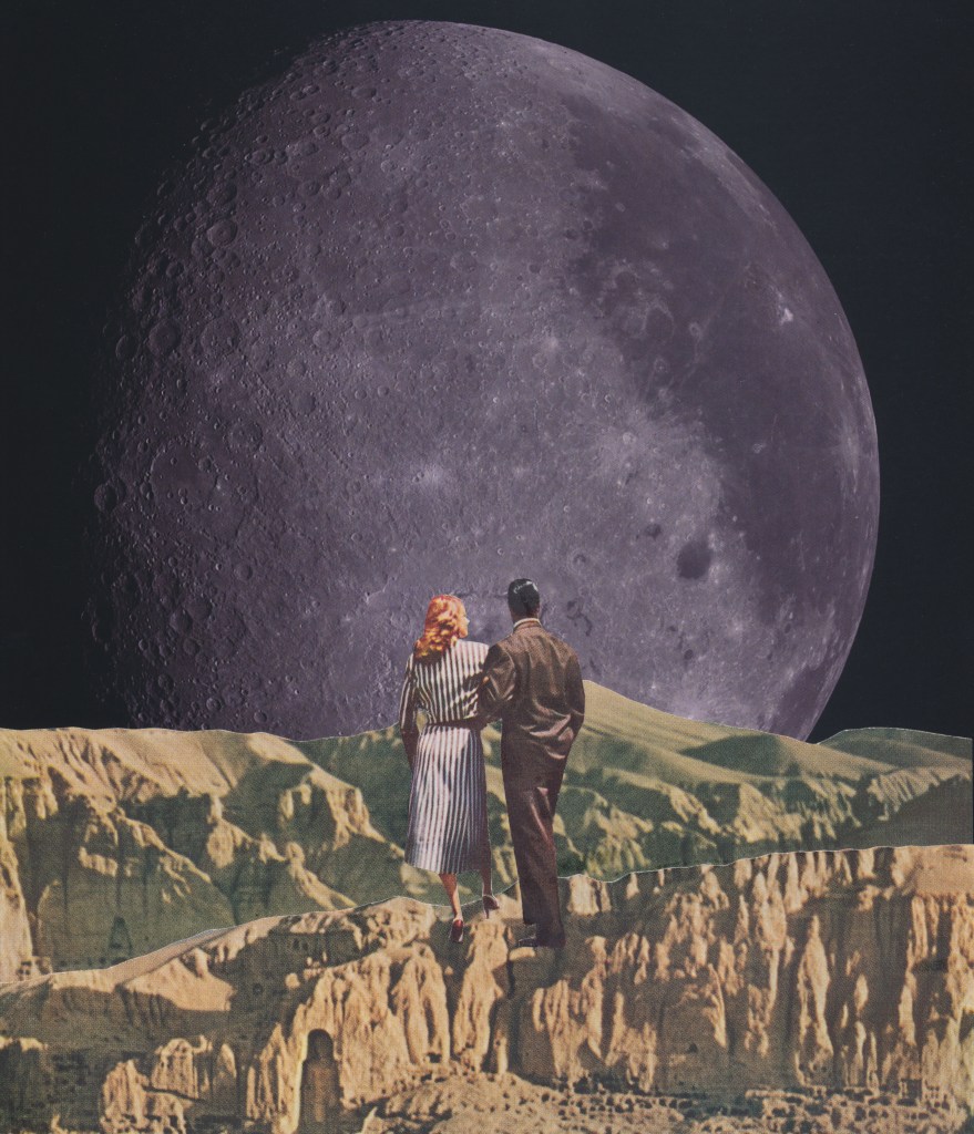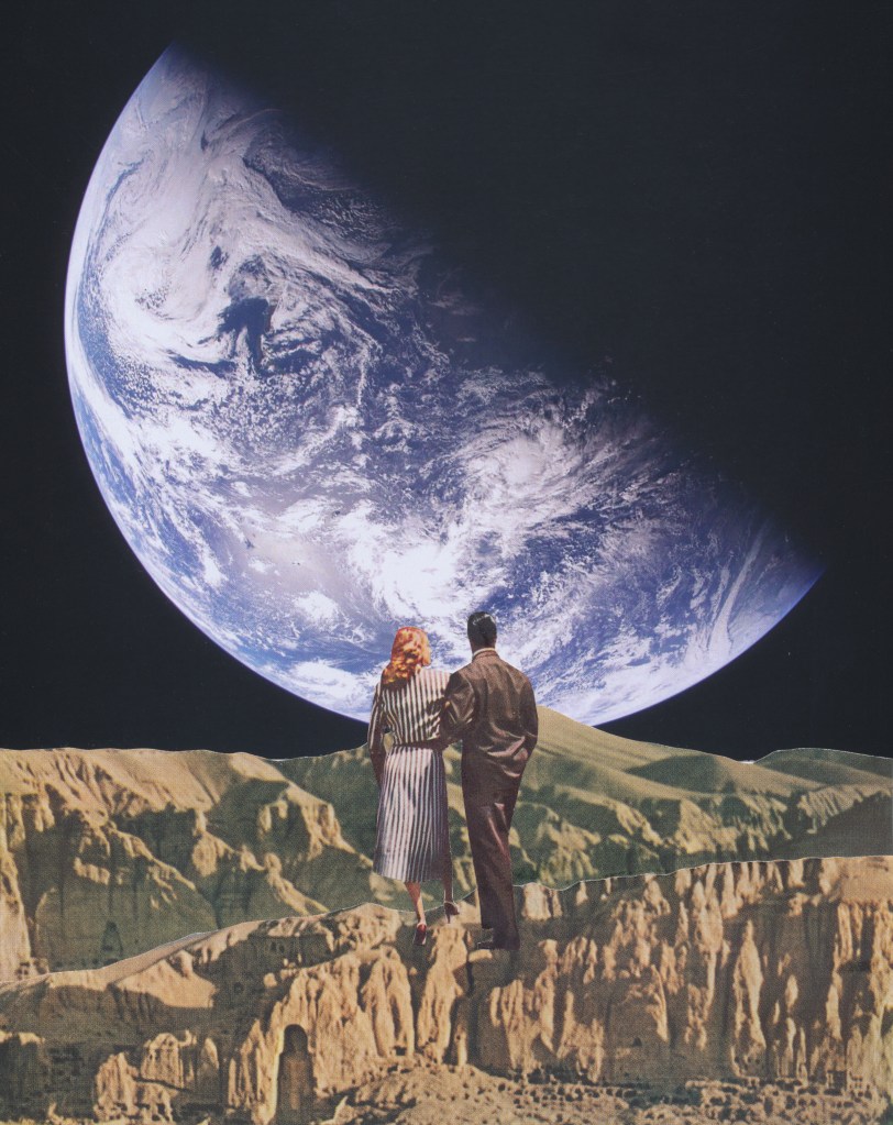 I thought it might be fun to make some retro-futuristic collages using photos from Artemis II (image credit to NASA); so, yesterday, I had several of them printed and got to work.