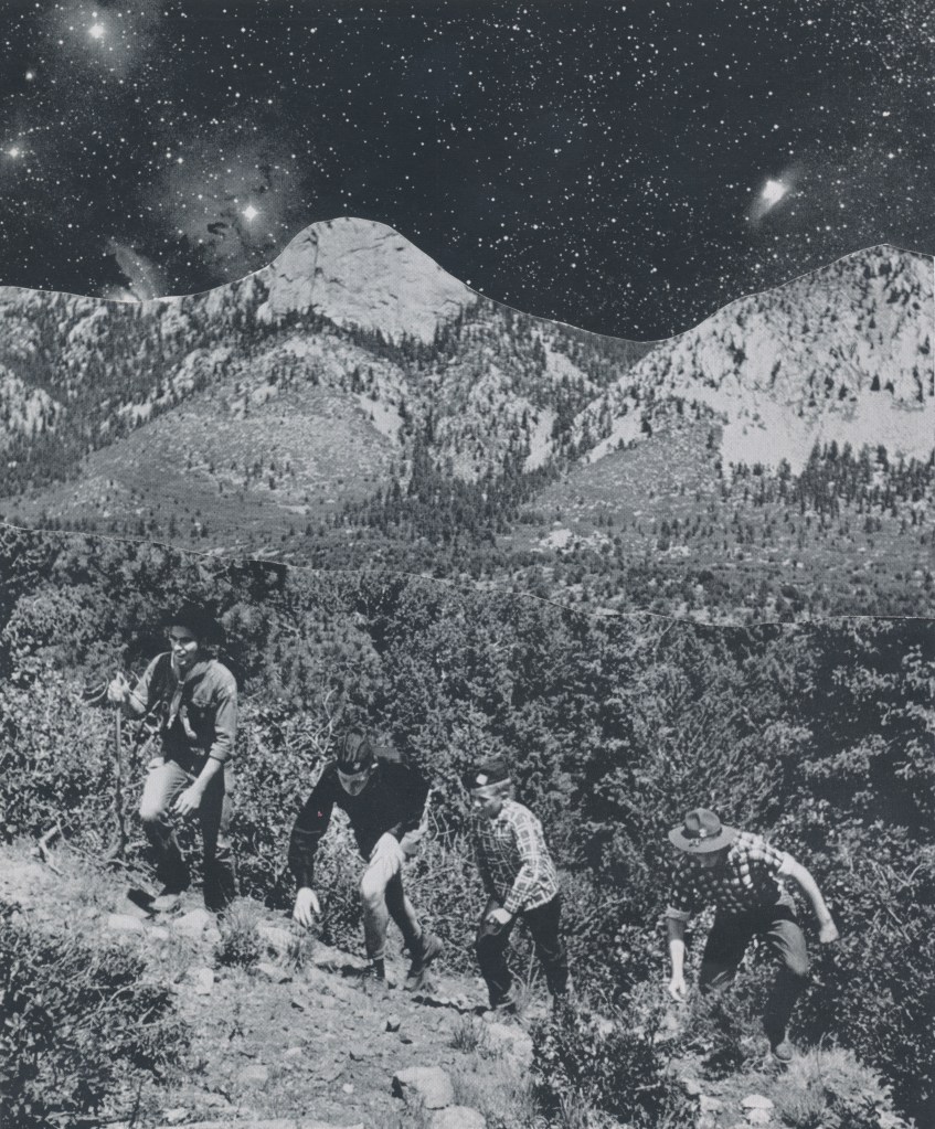 Travelers, paper collage, 2026