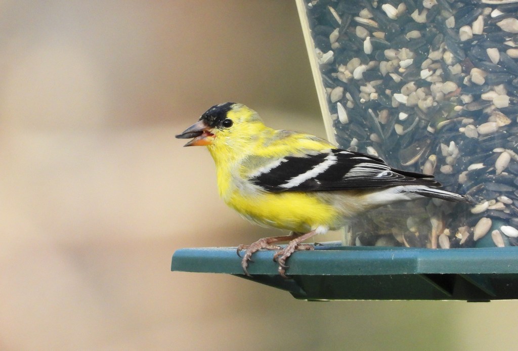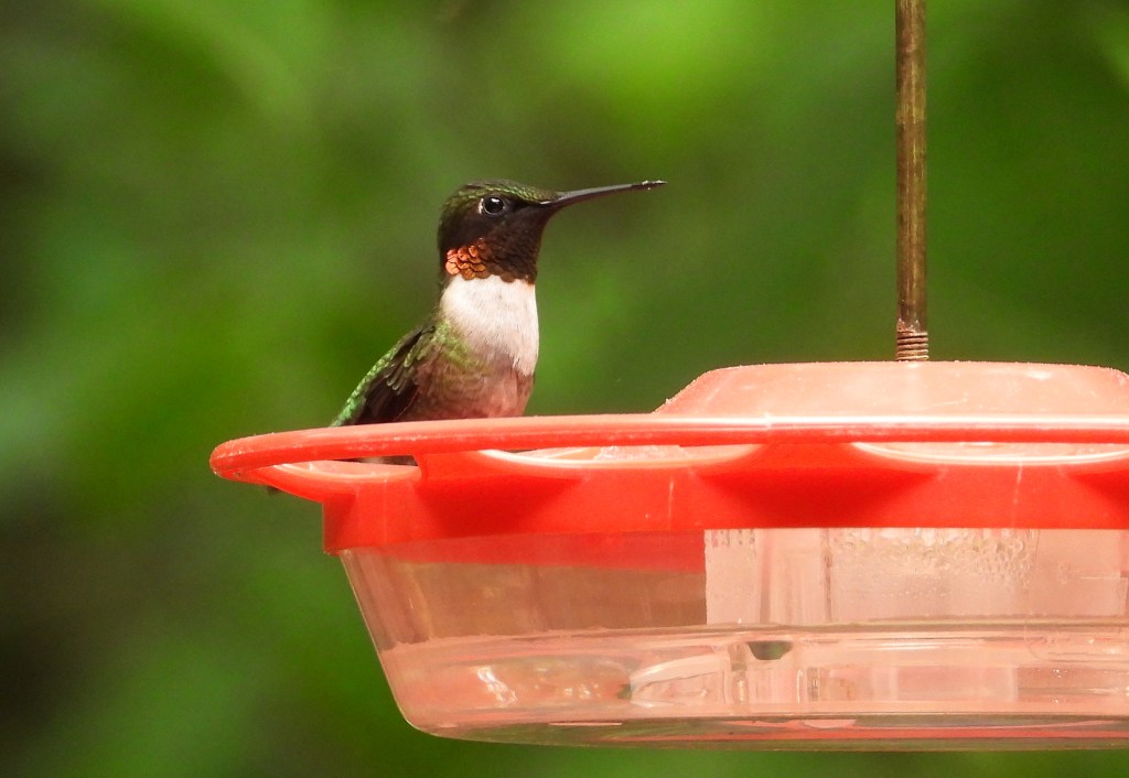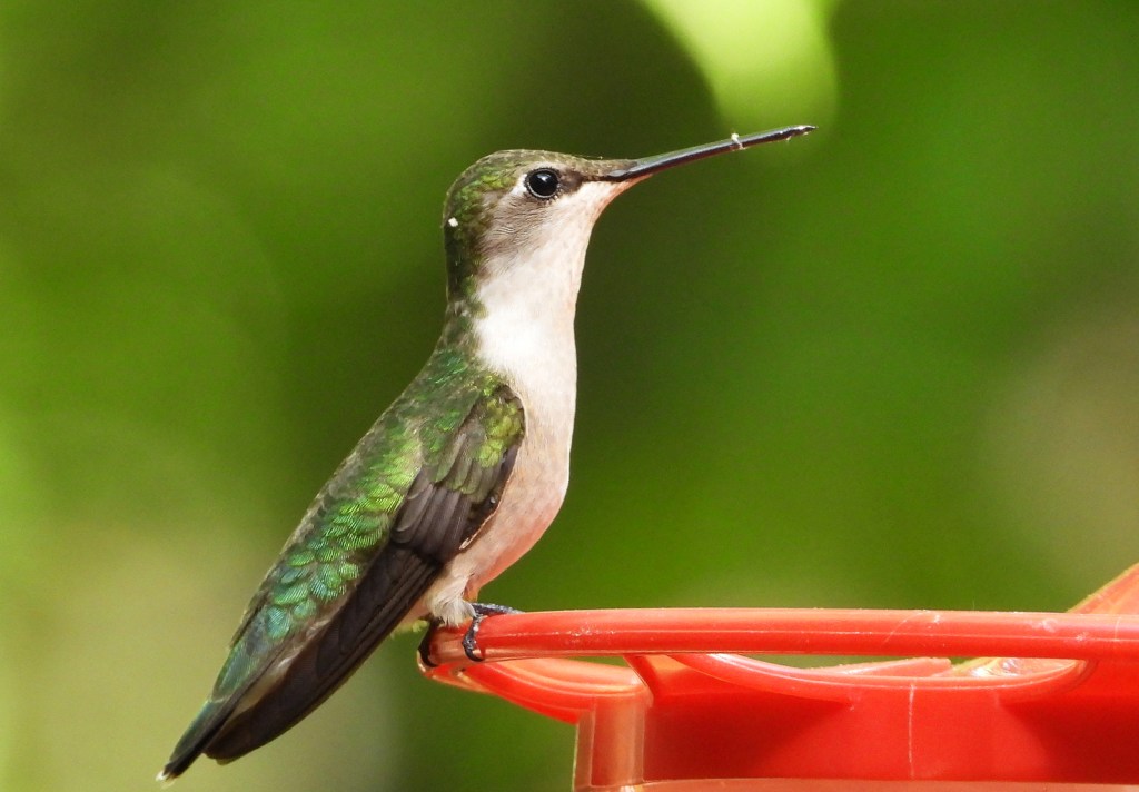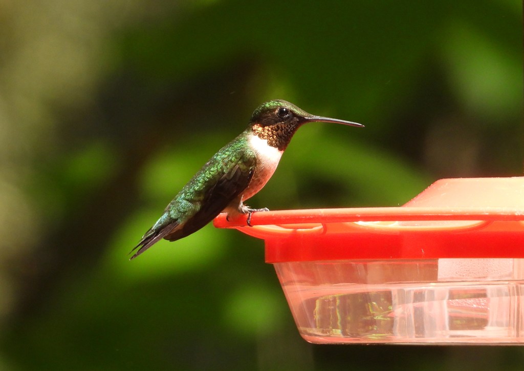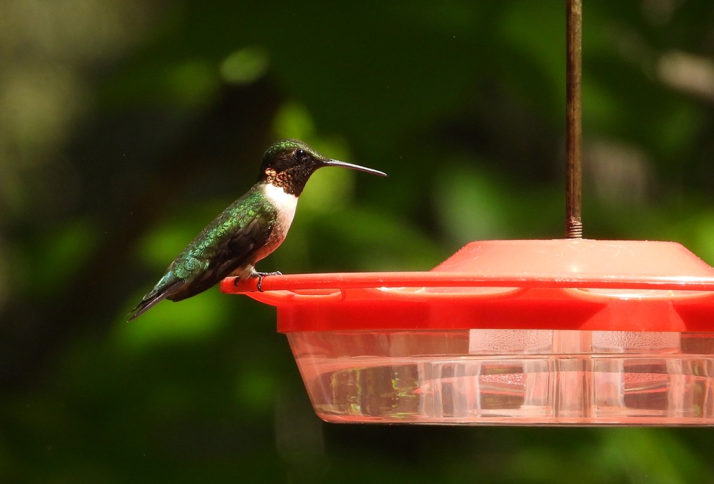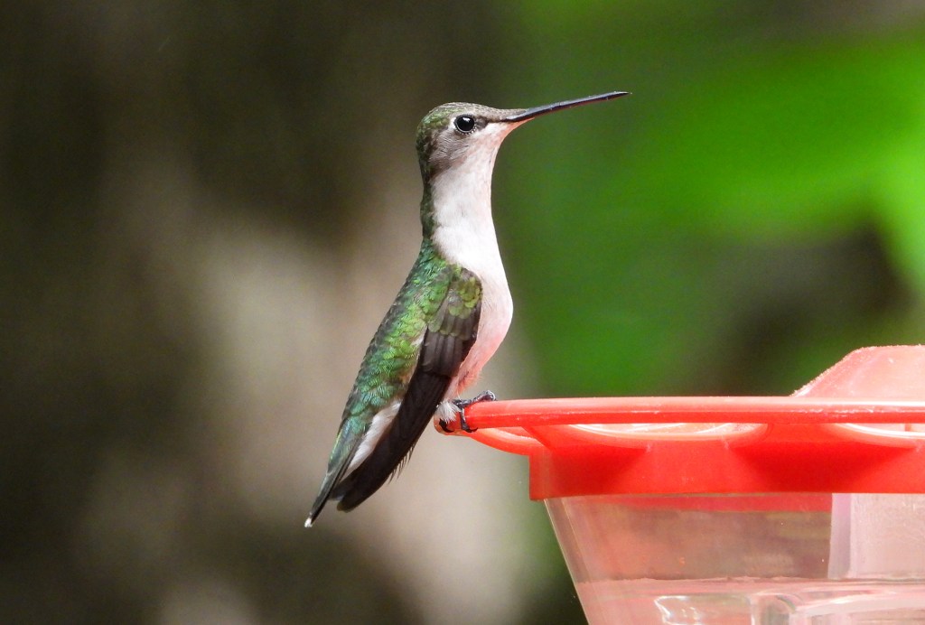 Second, there are hummingbirds! The first Ruby-throated Hummingbirds of the season have arrived. At this time of year, I don’t typically see more than one hummingbird at my feeder at a time, and it’s always an adult male. The reason: adult males migrate earlier than females in order to establish their breeding territories. (I spotted the first hummingbird of the season at the end of March.) But, you’ll notice this collections contains photographs of a female. I first saw her at my feeder last weekend, and I was really surprised! This is the earliest in the season I can recall spotting a female Ruby-throated Hummingbird. I don’t normally see them until sometime in May.