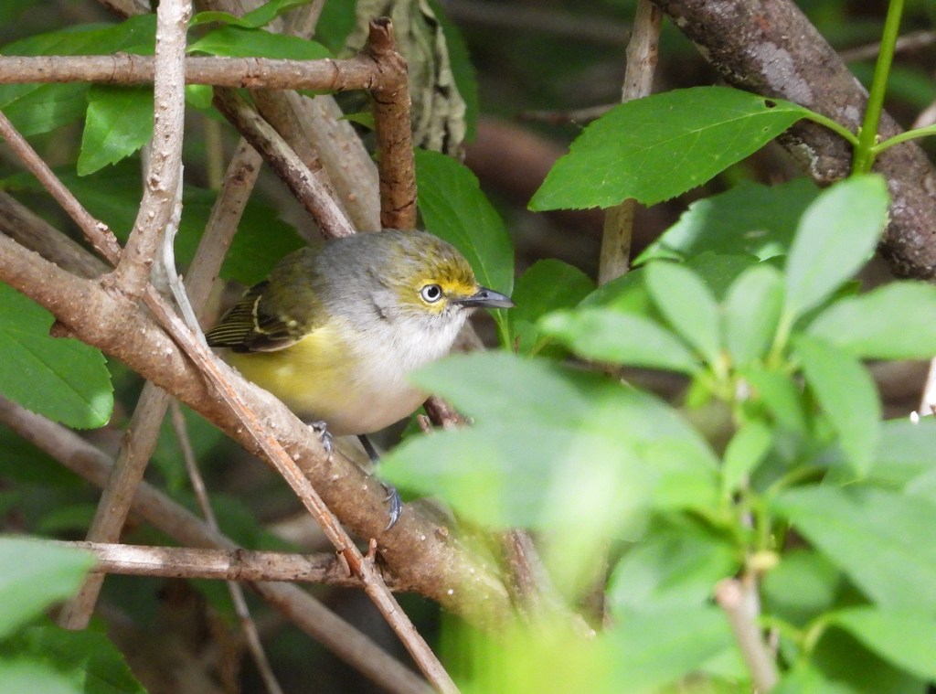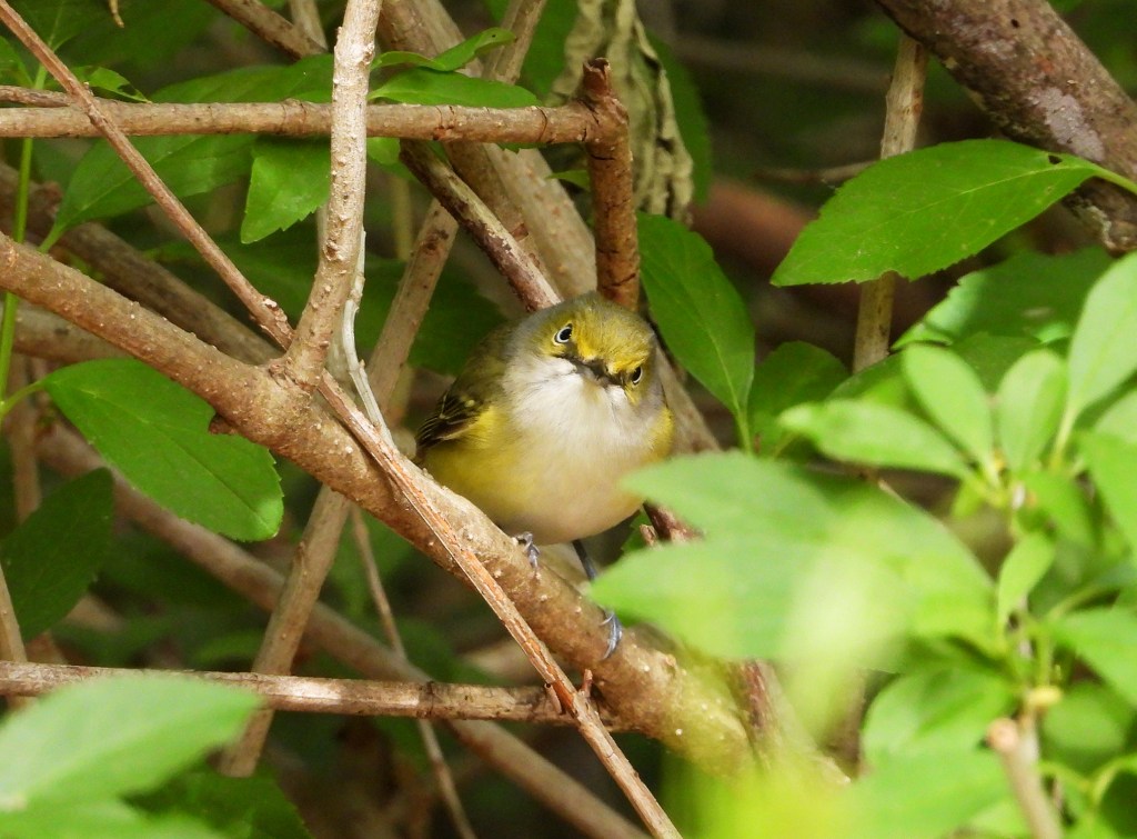 First, the White-eyed Vireo (above) was a real treat! When I was outside refilling my bird feeders on Sunday afternoon, I heard unfamiliar birdsong, which I located in a tangle of wild forsythia right where my front lawn meets the woods beside my home (and which, naturally, meant all plans for the rest of the day were cancelled). So, I grabbed my camera and parked myself there. I sat for a long time watching a little bird dart around inside the bushes, until finally a little head emerged and looked in my direction. It was a White-eyed Vireo–and my first encounter with one. I was only able to get two shots and, thankfully, both are acceptable; although, I am hoping for another opportunity in the coming days to perhaps get a better photograph.